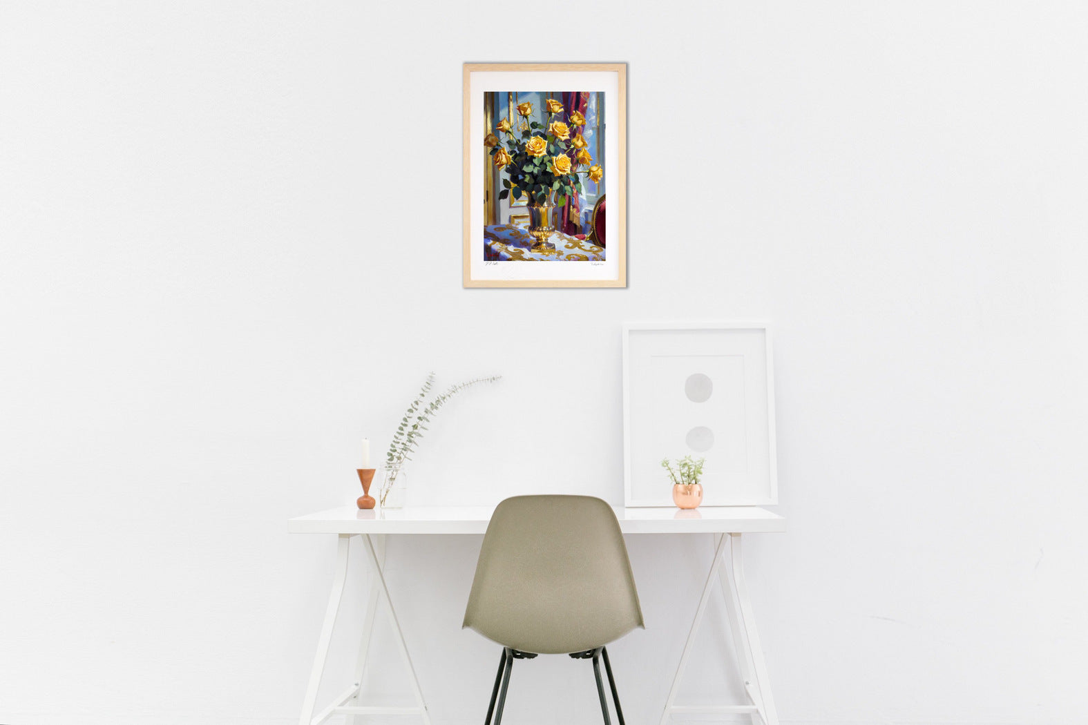 フレームカラーは作品画像の額縁でお届けします。 ご希望があれば変更も可能。ホワイト・ナチュラル・ブラウン・ブラックからお選び頂けます。ご希望の場合は、ご注文時備考欄に「○○フレーム希望」とご記入ください。