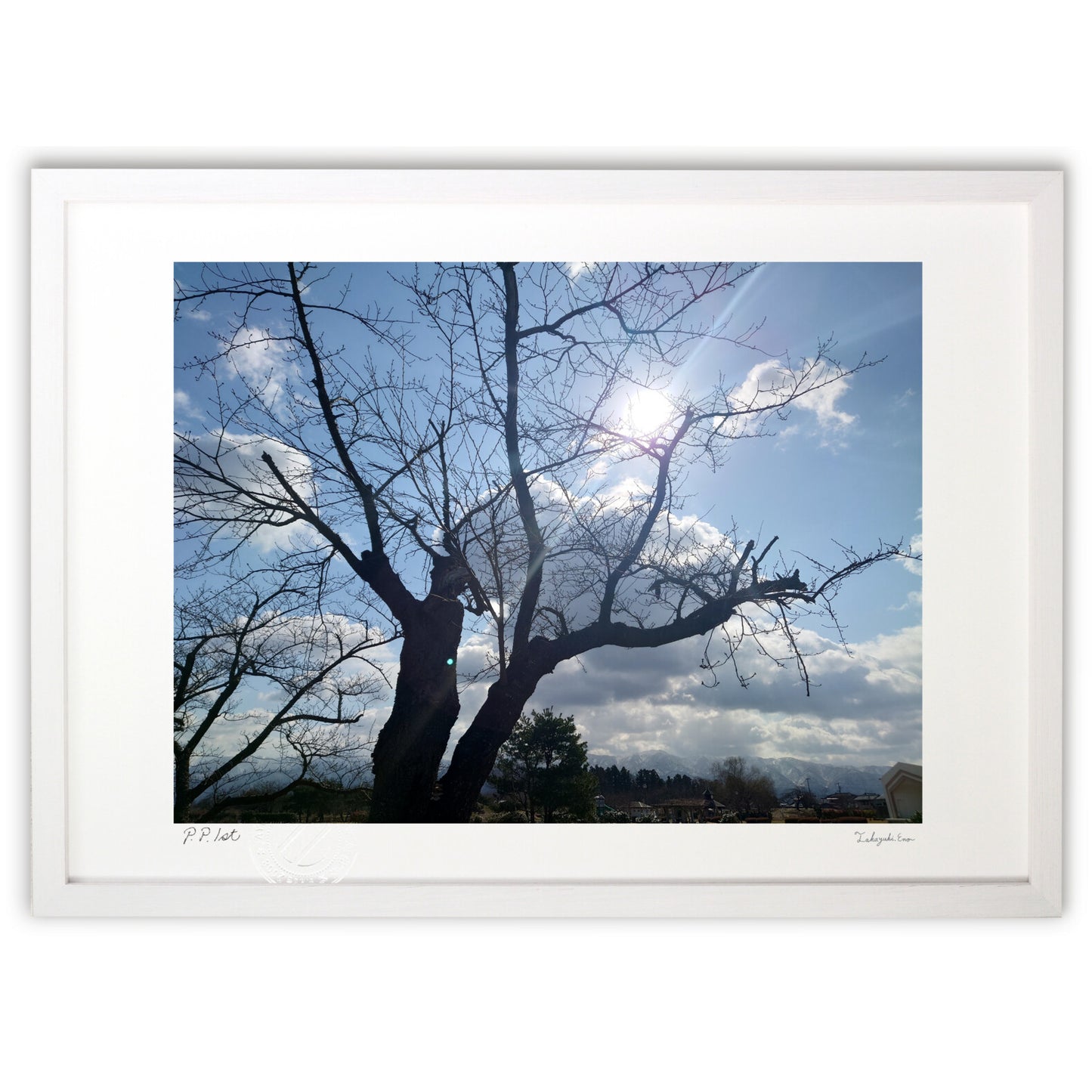 フレームカラーは作品画像の額縁でお届けします。 ご希望があれば変更も可能。ホワイト・ナチュラル・ブラウン・ブラックからお選び頂けます。ご希望の場合は、ご注文時備考欄に「○○フレーム希望」とご記入ください。