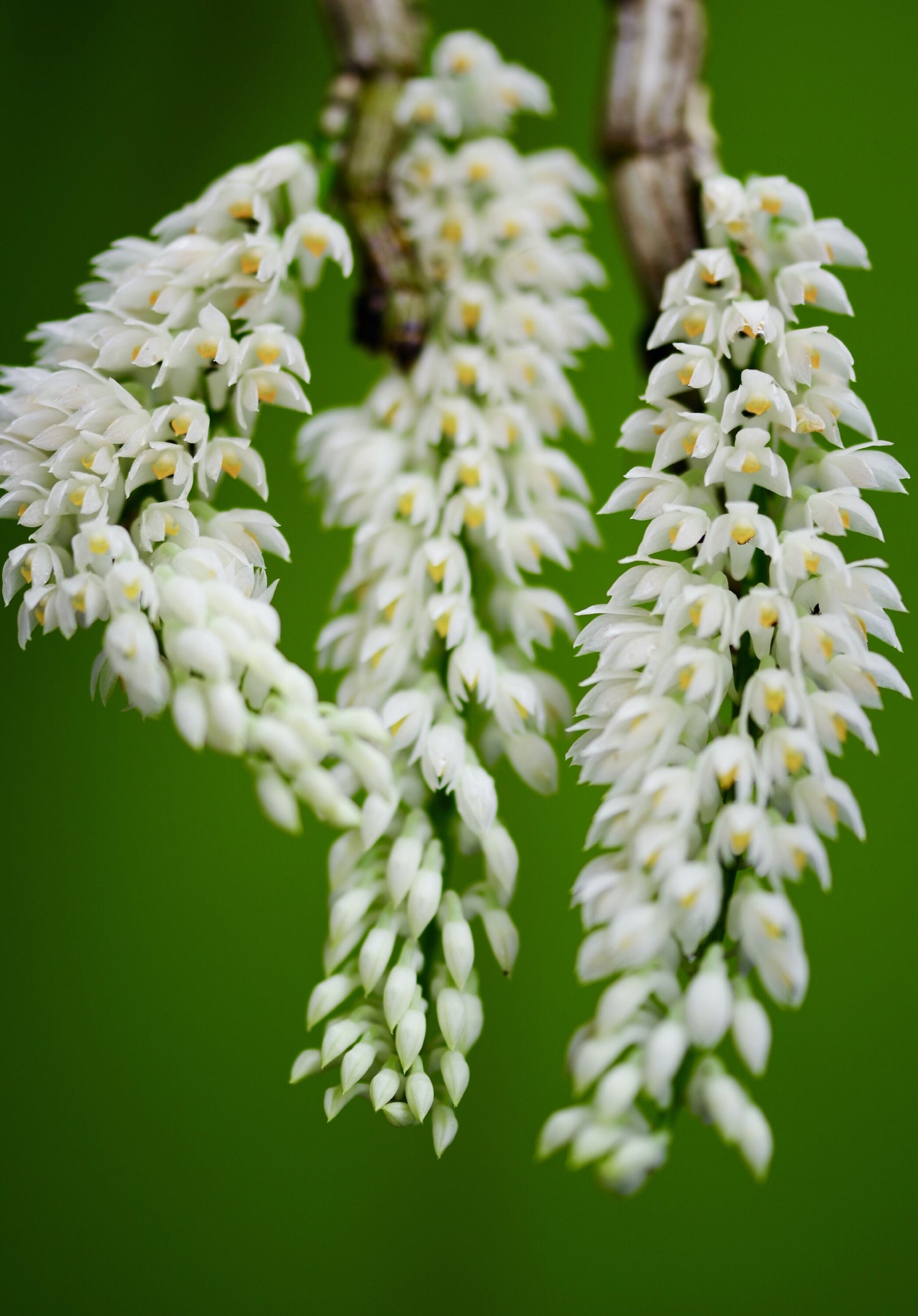 デンドロビュームの原種で、細長い茎の先端に白い花を沢山つける。ビルマ、タイ、インドシナ、フィリピン、ジャワ標高500から1200mに自生する。