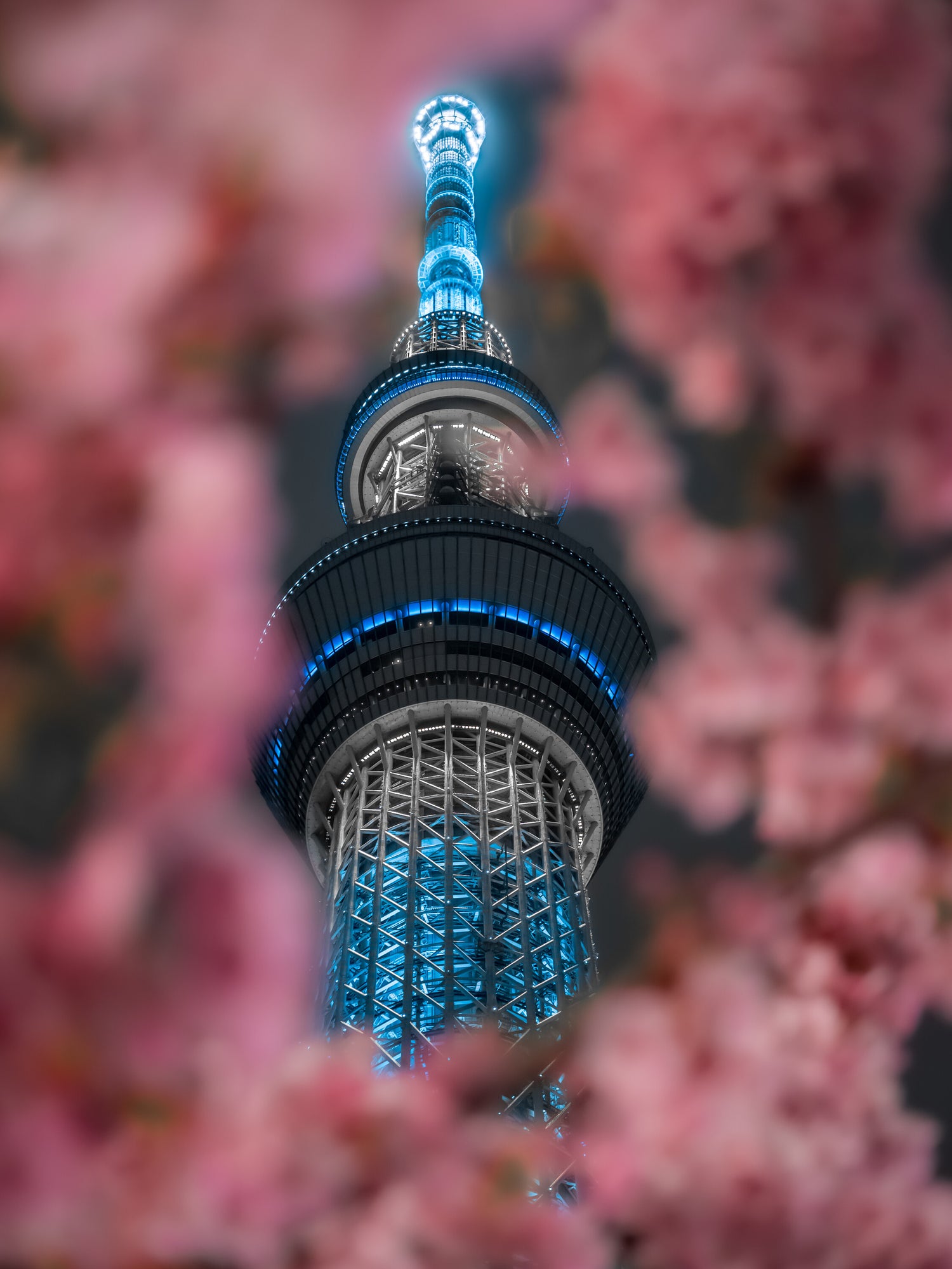 桜を使い額縁構図でスカイツリーを囲い、撮影をしました