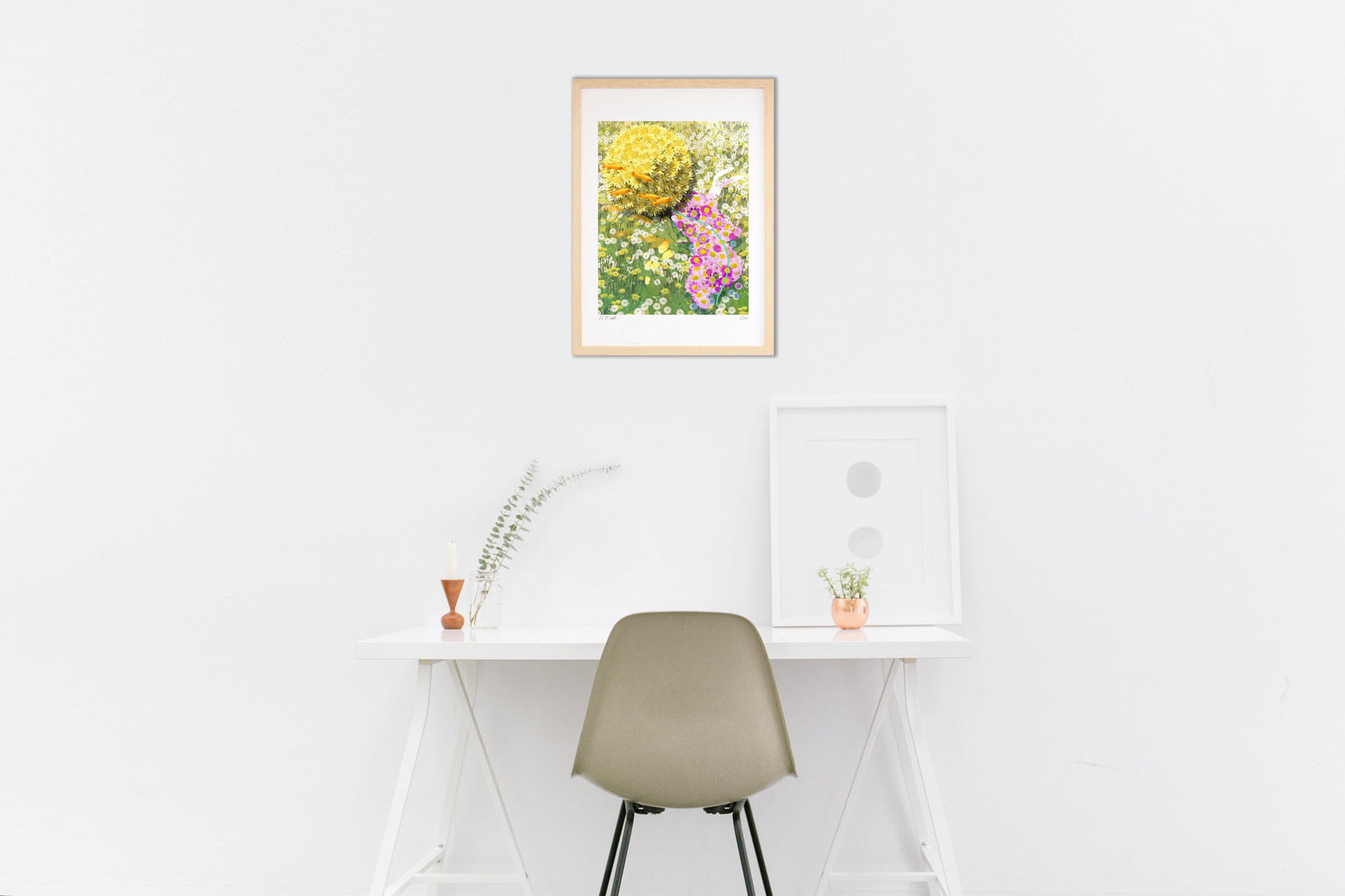 フレームカラーは作品画像の額縁でお届けします。 ご希望があれば変更も可能。ホワイト・ナチュラル・ブラウン・ブラックからお選び頂けます。ご希望の場合は、ご注文時備考欄に「○○フレーム希望」とご記入ください。
